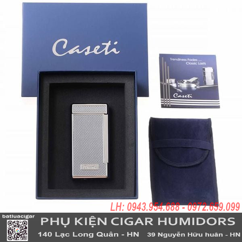 Với kích thước 70 × 37 × 13 mm, Caseti CA437 có thiết kế gọn gàng nhưng vẫn tạo ấn tượng mạnh mẽ nhờ phong cách đặc trưng của Caseti. Bật lửa đi kèm hộp và giấy tờ chính hãng, sang trọng và rất thích hợp làm quà biếu tặng.
