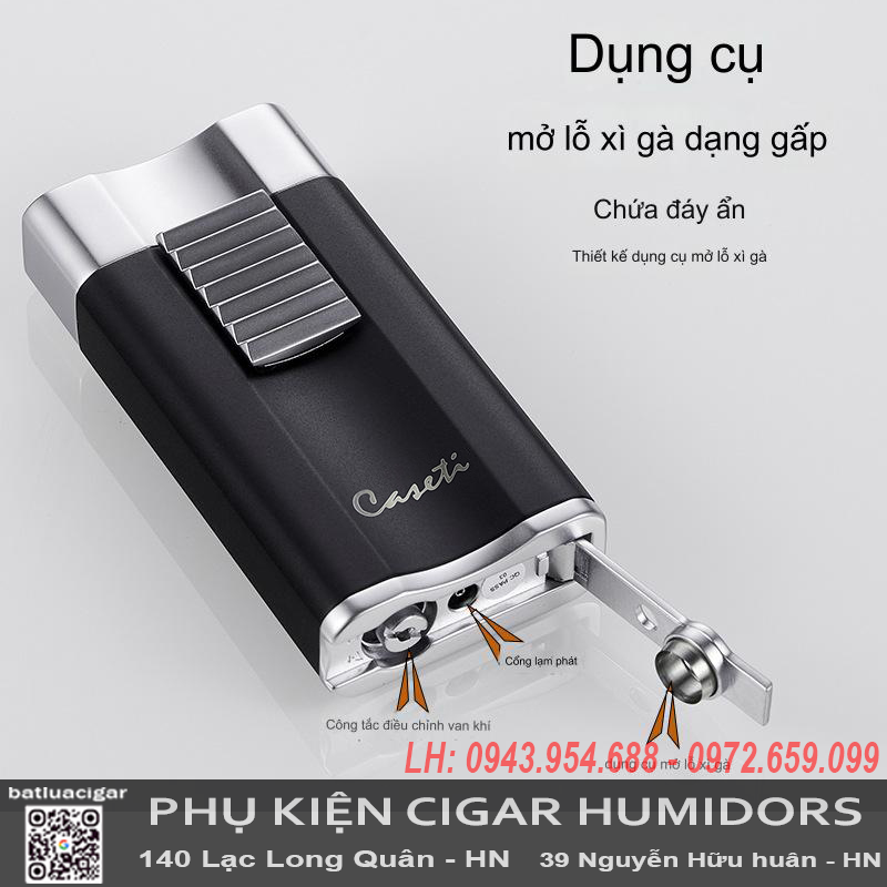 Bật Lửa Caseti CA558 Chính Hãng – Cao Cấp, Có Đục Cigar, ChỐng Gió, Thiết Kế Sang Trọng