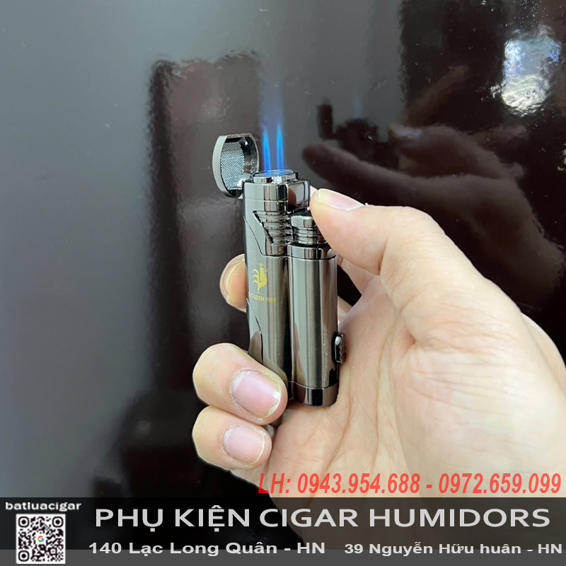 Khò 2 tia xanh mạnh – ngọn lửa tập trung, đốt cigar nhanh và hiệu quả.