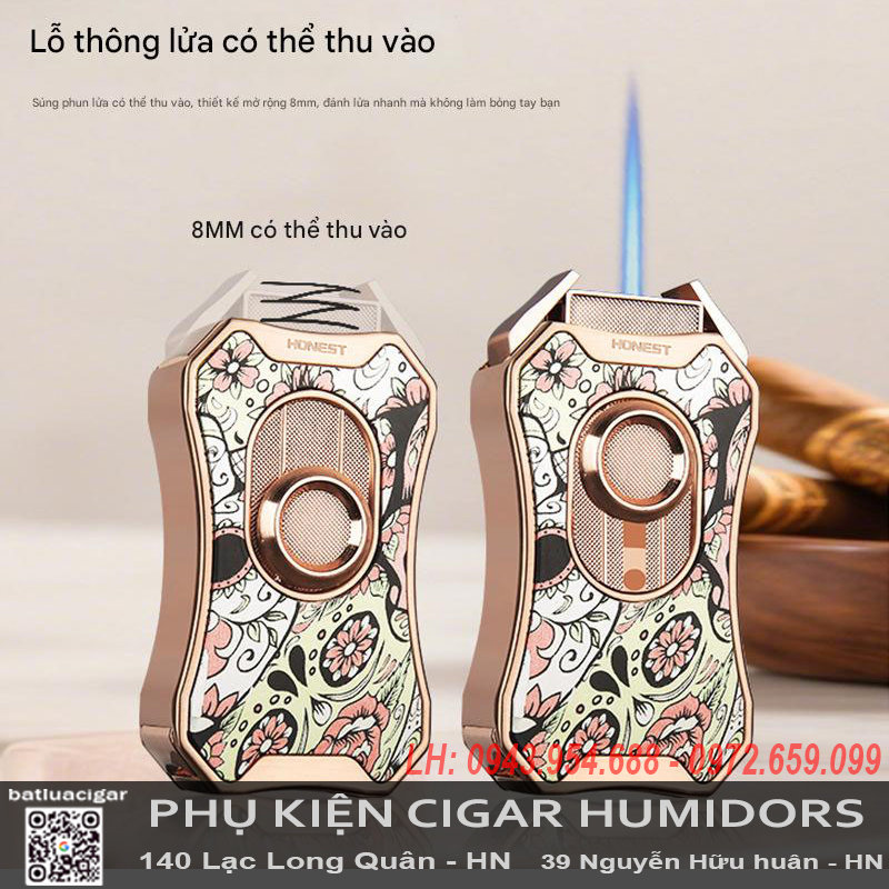 Bật lửa khò 1 tia Honest BCZ833-1 chính hãng – Có đục lỗ cigar, chống gió, nhìn rõ gas, kim loại cao cấp
