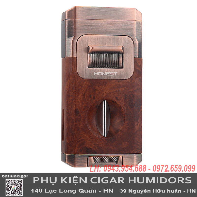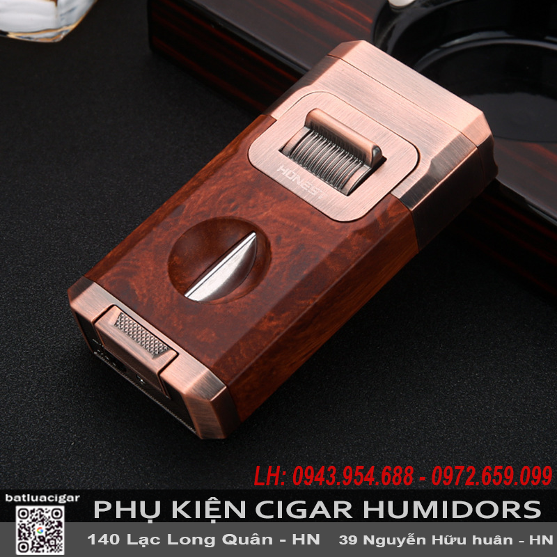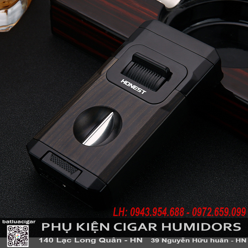 Bật lửa khò 2 tia Honest BCZ813-2 chính hãng – Tích hợp V-cut, gác điếu, khe nhìn gas, kim loại cao cấp