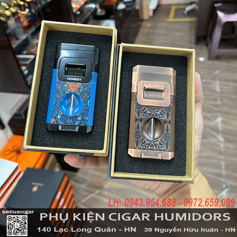 Honest BCZ813-2 là mẫu bật lửa khò đa năng cao cấp, thiết kế mạnh mẽ – sang trọng – tiện dụng cho người chơi cigar. Với 2 tia lửa chụm siêu ổn định, tích hợp V-cut sắc bén, gác điếu ngay trên thân và khe nhìn gas trực quan, đây là một trong những mẫu bật lửa đa dụng đáng sở hữu nhất trong tầm giá.