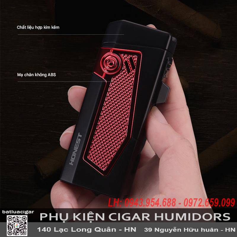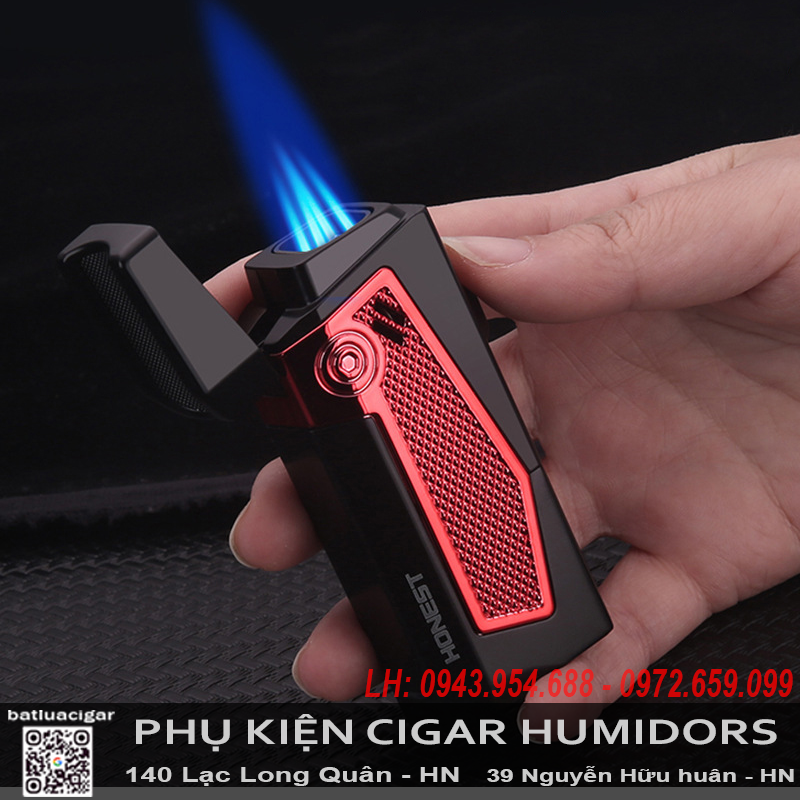 Bật lửa khò 4 tia Honest BCZ769-1 chính hãng – Có đục cigar, gác điếu, khe nhìn gas, kim loại cao cấp