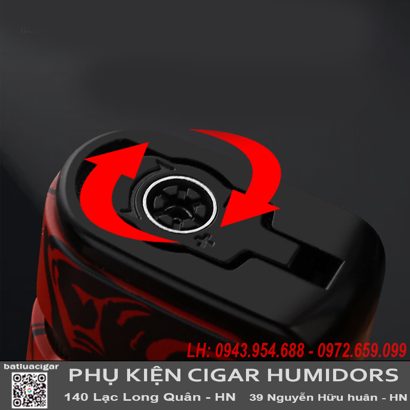 Tiện ích: Đục lỗ cigar, khe nhìn ga, nút chỉnh lửa, khóa lửa