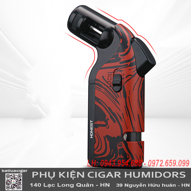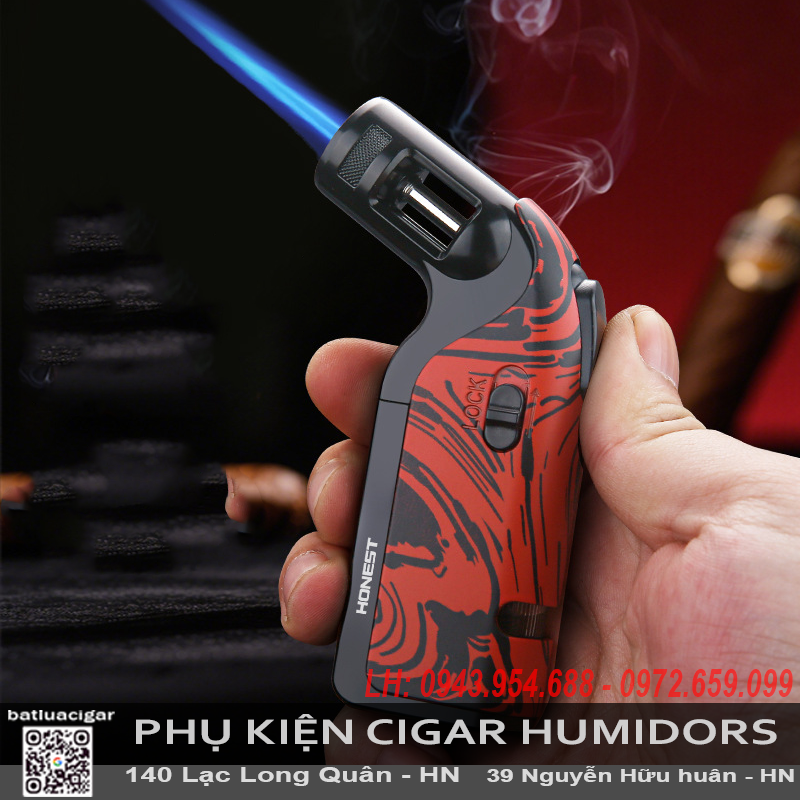 Bật Lửa Khò Ngang Honest BCZ857-1 Chính Hãng – 1 Tia Chống Gió, Có Đục Cigar & Khóa Lửa