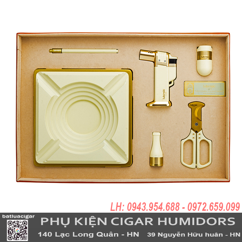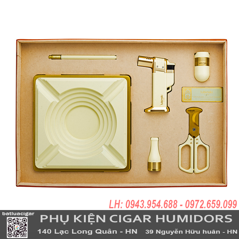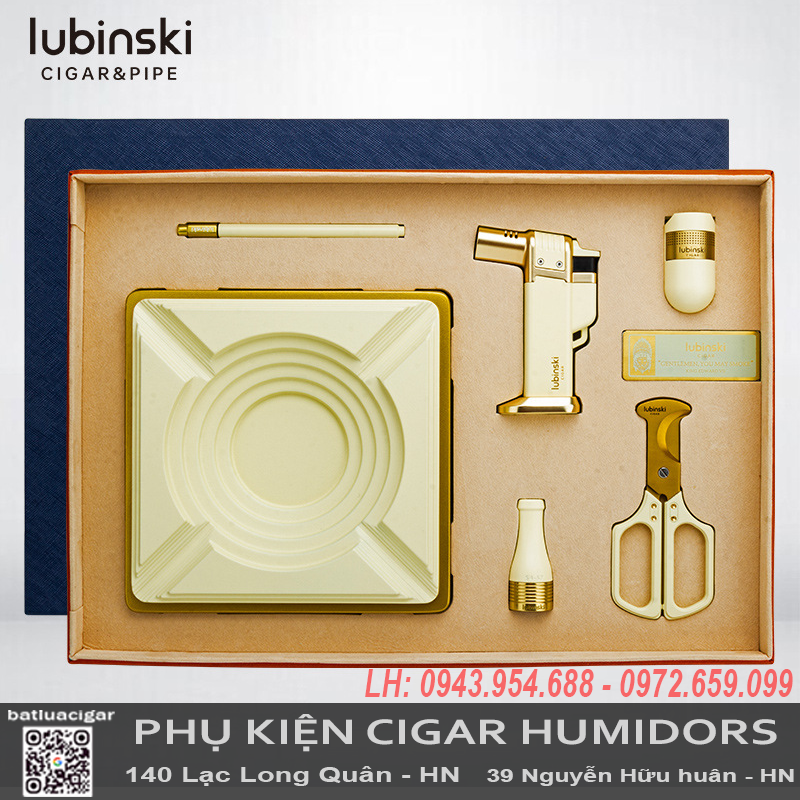 Bộ phụ kiện cigar Lubinski YJA-80031 là lựa chọn hoàn hảo dành cho người yêu cigar, mang đến sự tiện lợi, sang trọng và đẳng cấp trong một set quà tặng cao cấp. Với thiết kế tinh xảo từ nhiều chất liệu cao cấp, bộ phụ kiện này không chỉ hỗ trợ tối đa cho việc thưởng thức cigar mà còn thể hiện phong cách và gu thẩm mỹ tinh tế của chủ nhân.