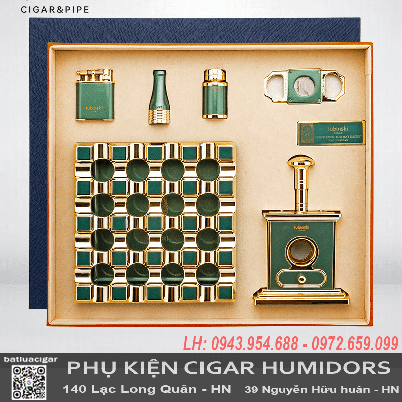👉 Bộ phụ kiện cigar 6 món Lubinski YJA-80033 không chỉ là bộ dụng cụ hỗ trợ thưởng thức cigar, mà còn là món quà tặng cao cấp, sang trọng và tinh tế, xứng đáng có mặt trong bộ sưu tập của bất kỳ tín đồ cigar nào.