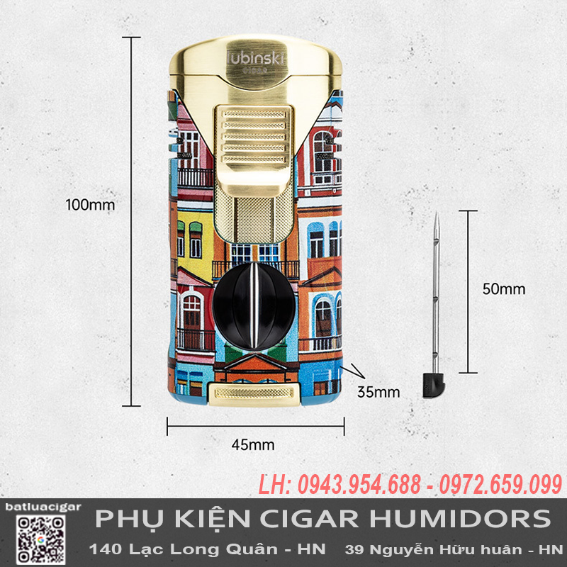 Bộ phụ kiện cigar chính hãng Lubinski YJA-80034 là lựa chọn hoàn hảo dành cho người yêu cigar, mang đến sự kết hợp tinh tế giữa đẳng cấp – tiện dụng – thẩm mỹ. Bộ sản phẩm gồm 2 món cao cấp: bật lửa khò 2 tia đa năng và gạt tàn cigar sang trọng, được chế tác tỉ mỉ từ hợp kim kẽm, thép không gỉ và sứ cao cấp.