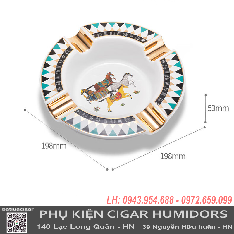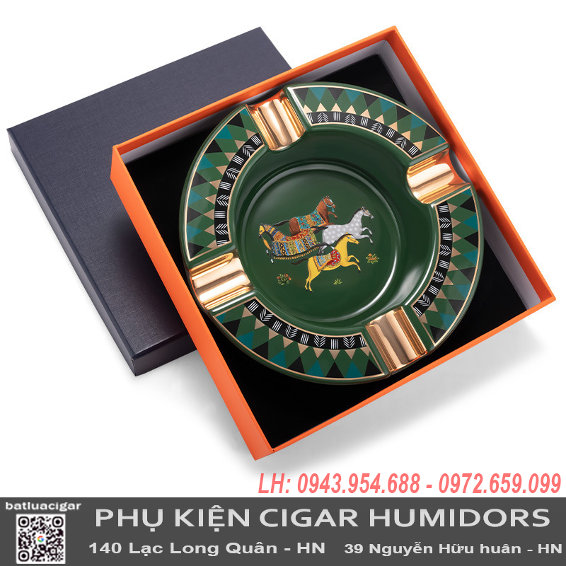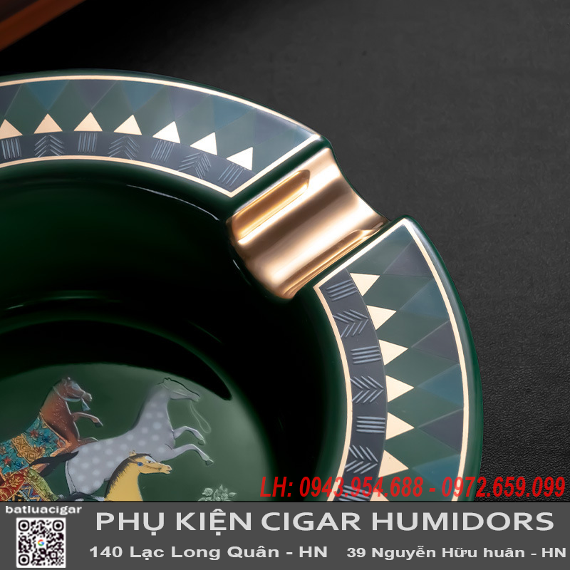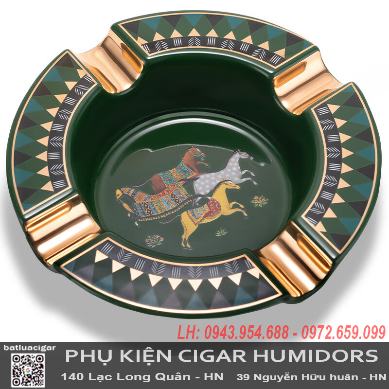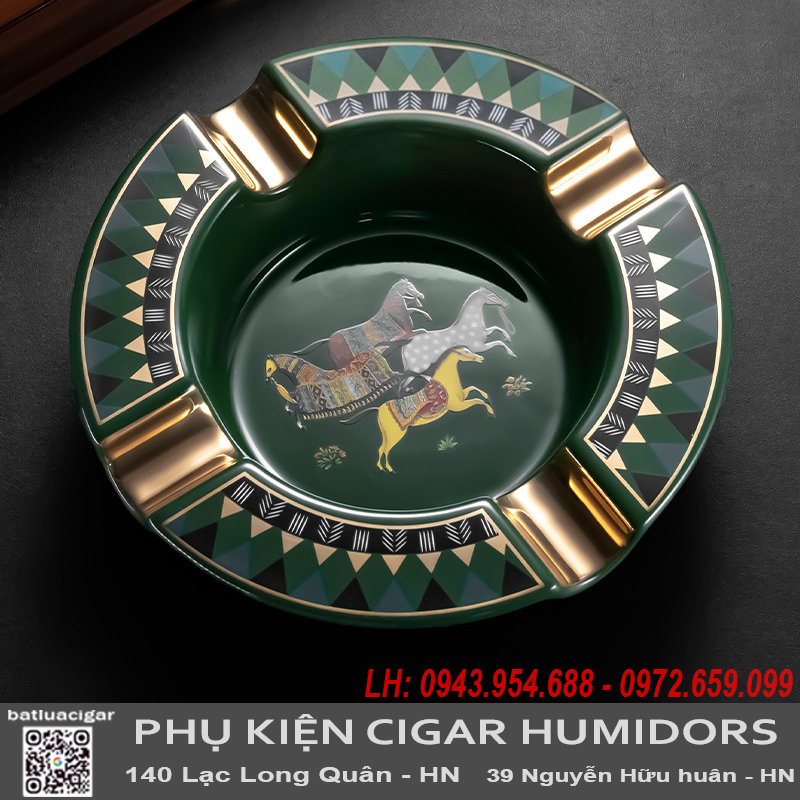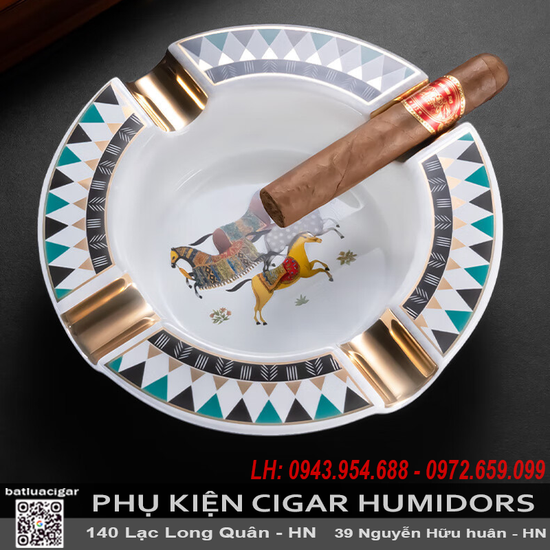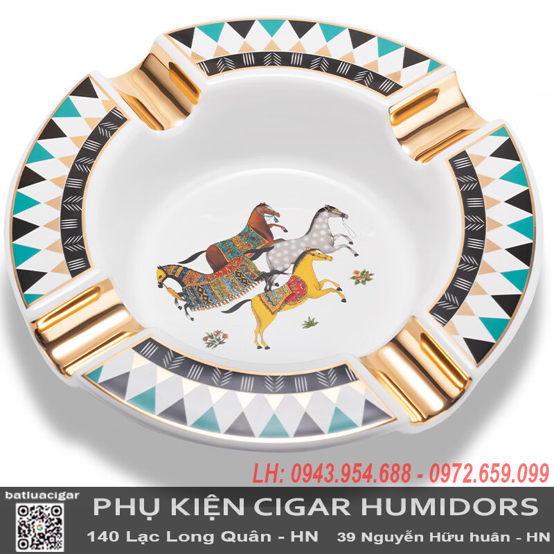 Gạt Tàn Cigar 4 Điếu Cao Cấp AS-24B2 – Gốm Sứ Hình Tứ Mã, Thiết Kế Sang Trọng, Kèm Hộp Quà