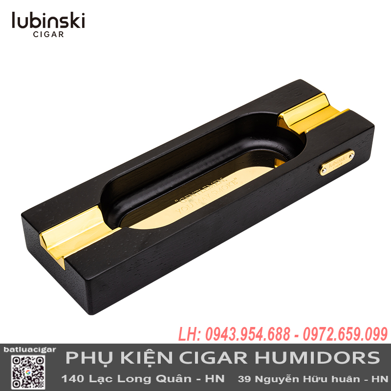 Gạt Tàn Cigar Lubinski Chính Hãng YJA-20054 – Gạt Tàn 2 Điếu Kết Hợp Gỗ & Đồng, Thiết Kế Sang Trọng