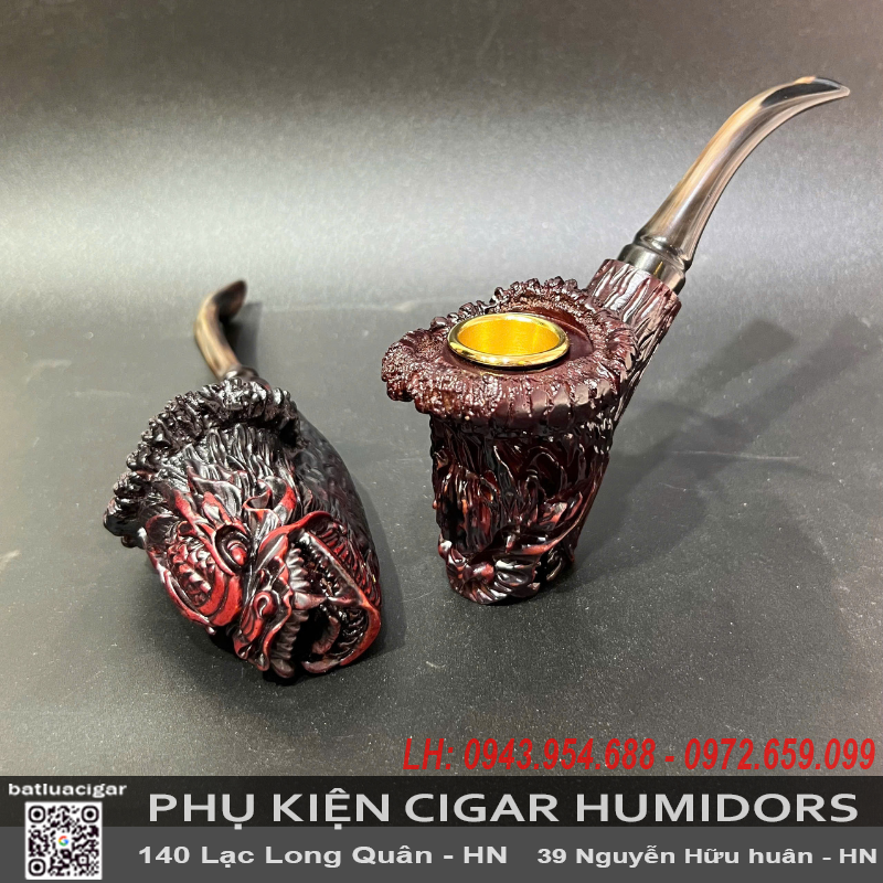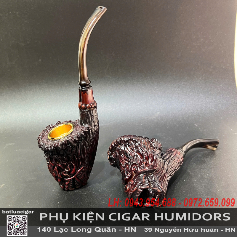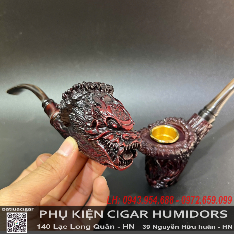 Điểm đặc biệt của chiếc tẩu này nằm ở thiết kế đầu rồng được nghệ nhân Việt Nam điêu khắc thủ công, tạo nên vẻ ngoài mạnh mẽ, sang trọng và rất độc đáo. Phần thân tẩu cong giúp thao tác hút cigar thoải mái hơn và tăng tính thẩm mỹ cho người sử dụng.